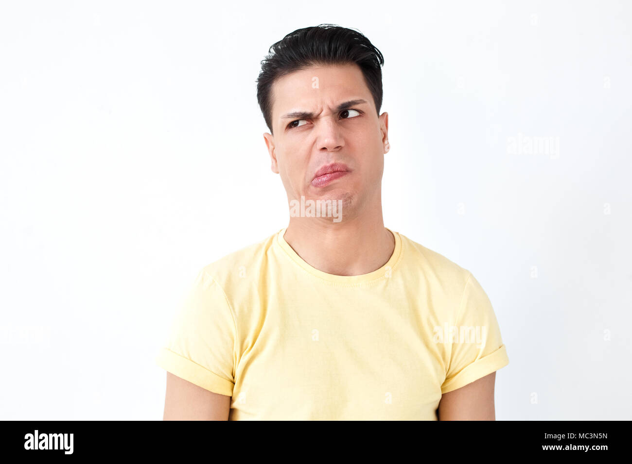 Retrato del hombre de pensamiento reflexivo y confiada y apartar la mirada. Concepto de
