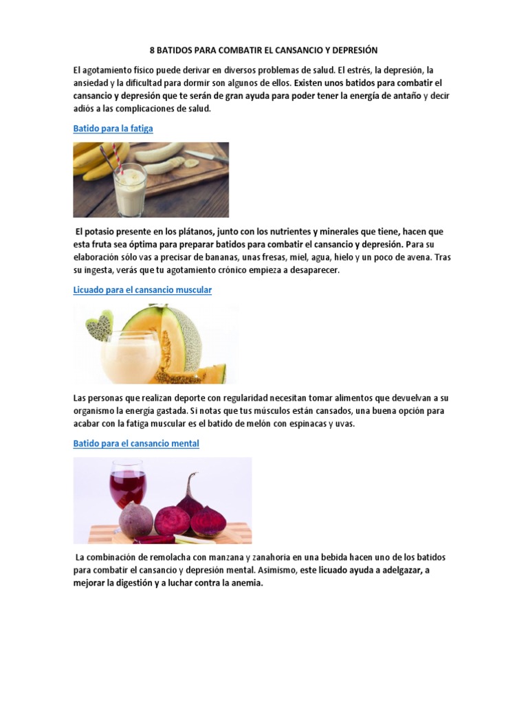 8 Batidos para Combatir El Cansancio y Depresión PDF Depresión