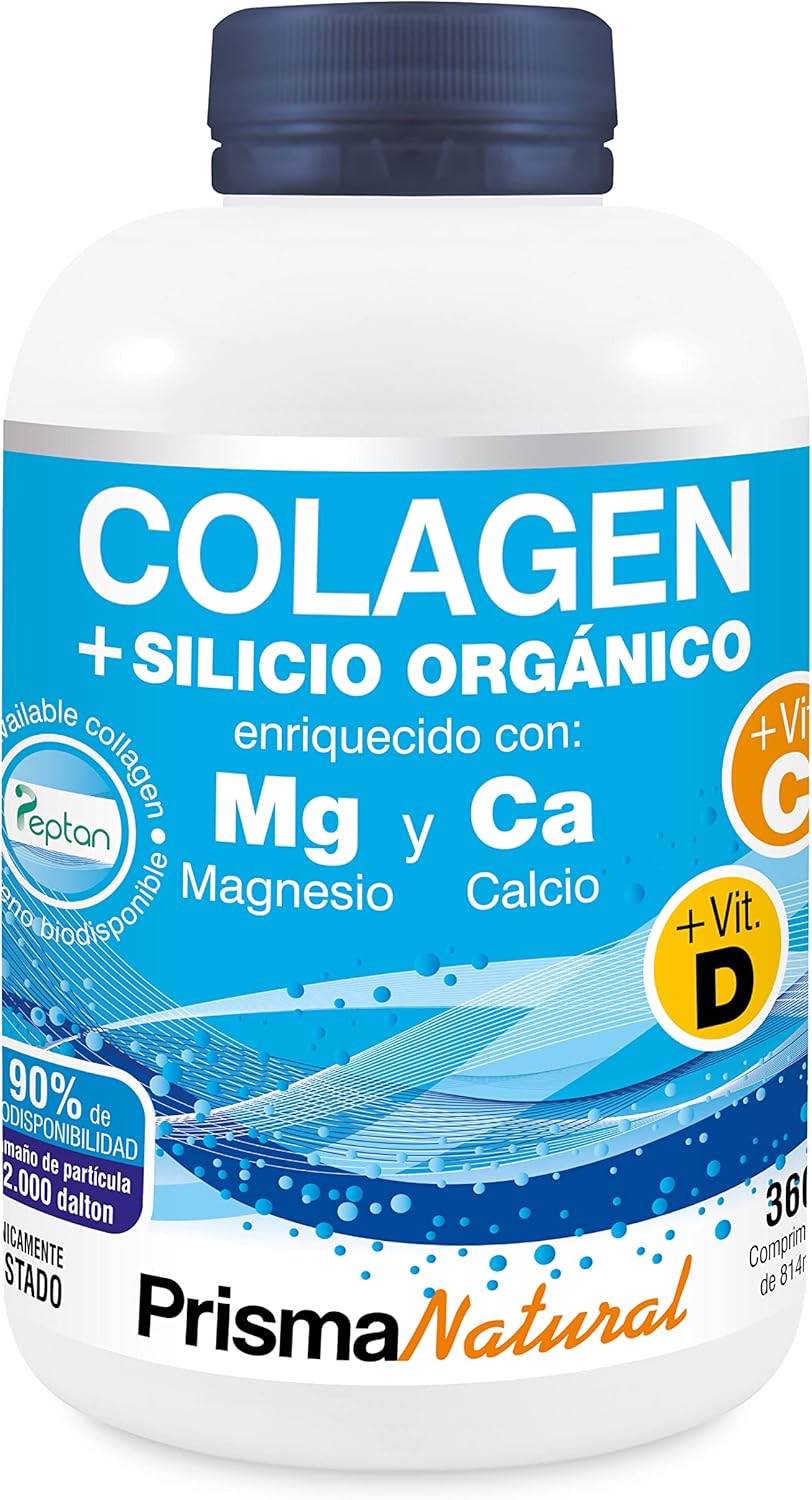Prisma Natural Colágeno Marino + Silicio Orgánico 360 comprimidos. Valorado con 4.80 de 5 en base a 5 opiniones de clientes. 42,50 € 38,25 €. Elige tu regalo en pedidos de más de 120€. Colágeno Marino + Silicio de Prisma Natural es un complemento nutricional que ayuda al mantenimiento de las articulaciones, piel y huesos.