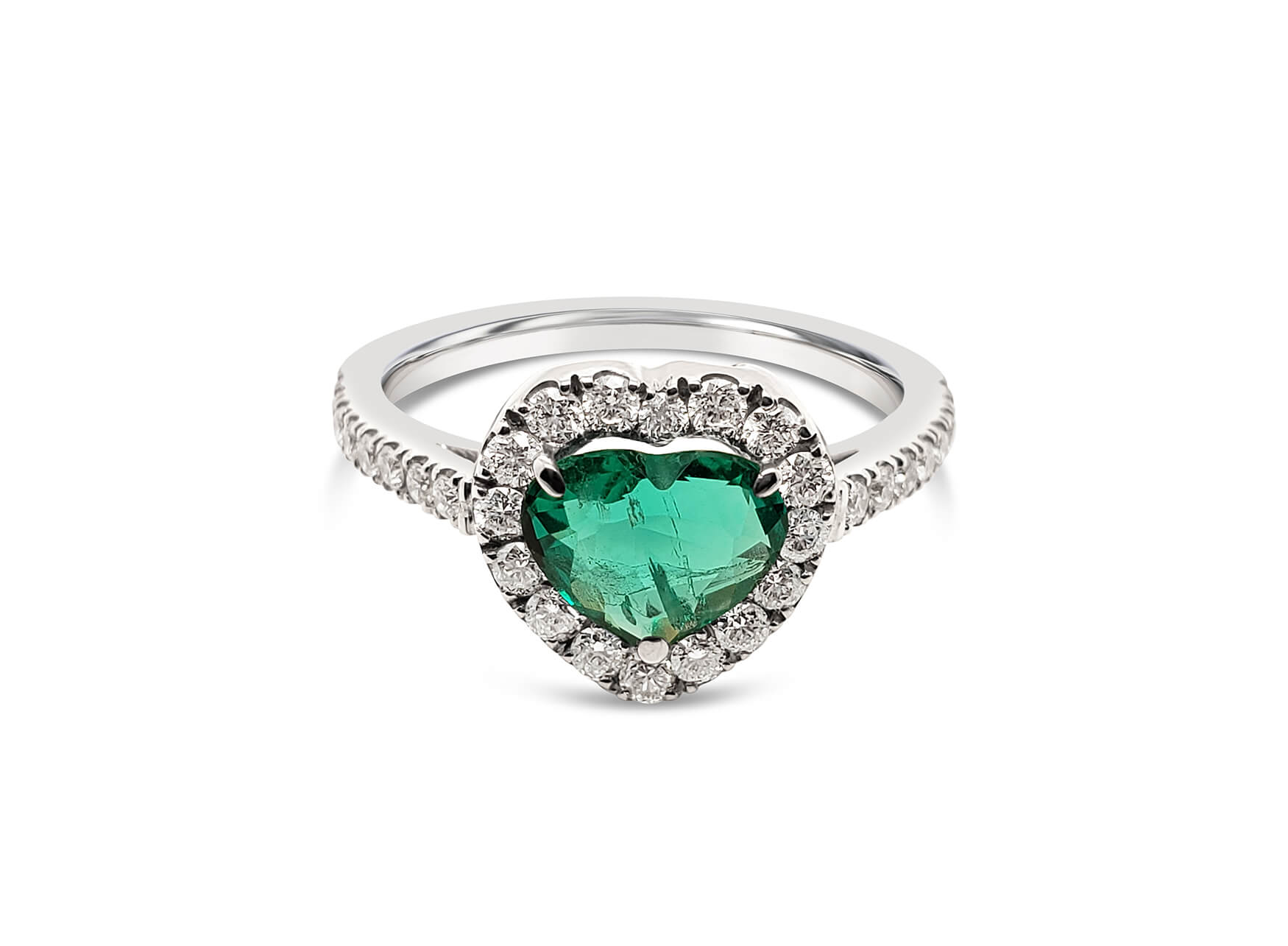 Anillo corazon de esmeralda con diamantes oro blanco JOYERIA BAUER BOGOTÁ CARTAGENA COLOMBIA