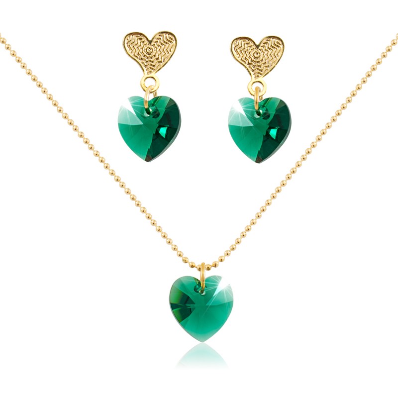 Collar Aretes Corazon Swarovski Esmeralda Bisuel