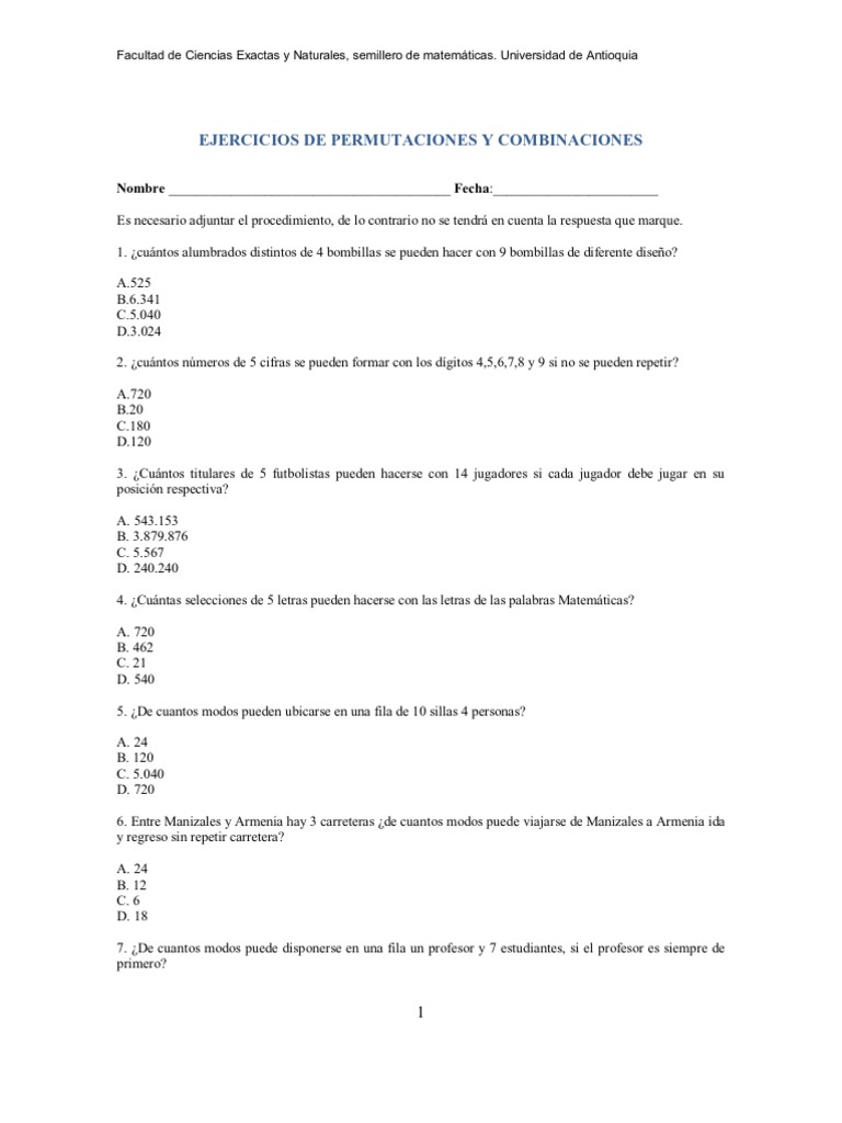 Hoy vamos a revisar los problemas propuestos y ejercicios resueltos de permutaciones y combinaciones, en análisis combinatorio. Todos los videos del tema:.