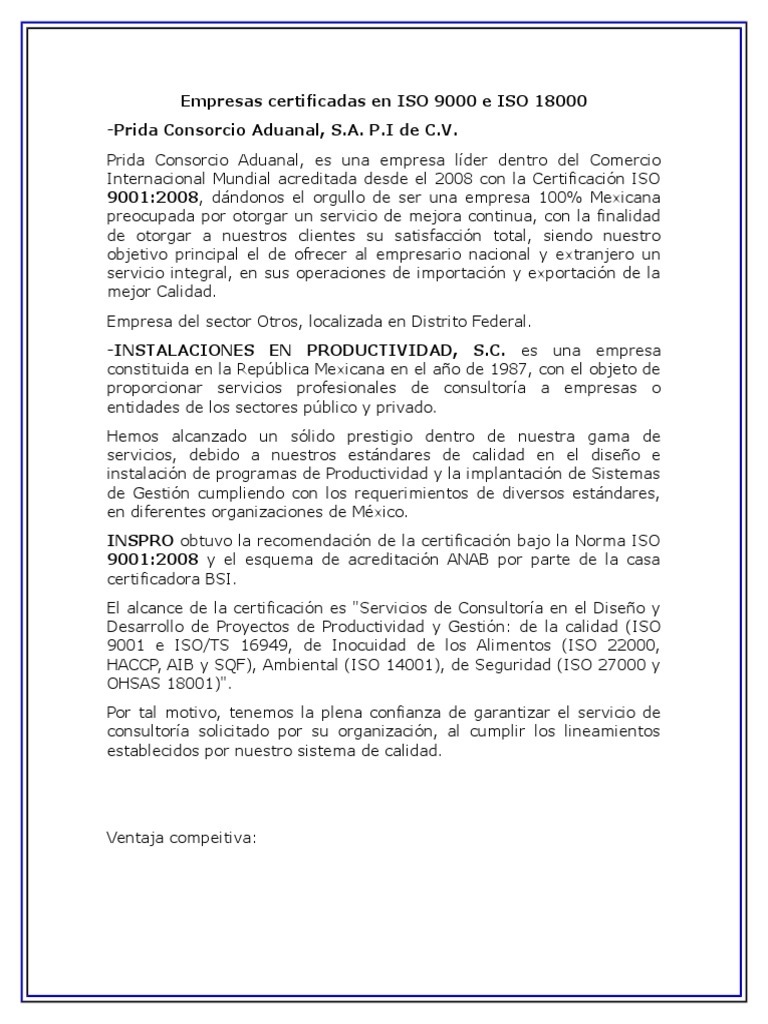 Empresas Certificadas en ISO 9000 e ISO 18000 Calidad Iso 9000