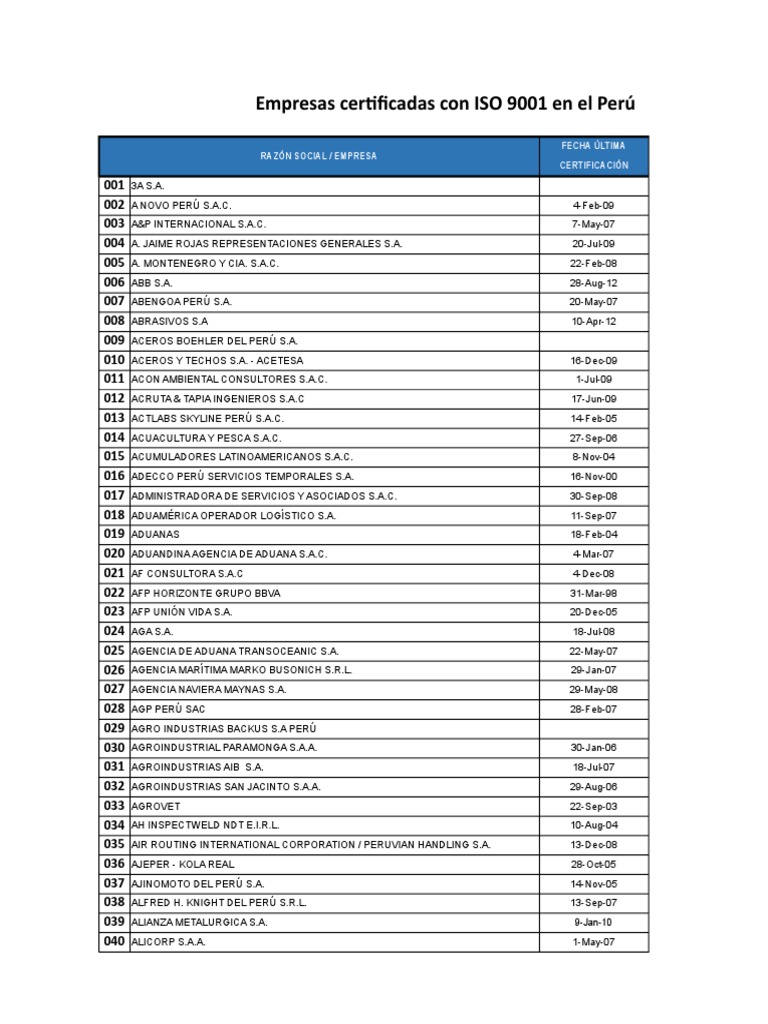 239177549 Empresas Certificadas Con ISO 9001 en El Peru Perú Negocios