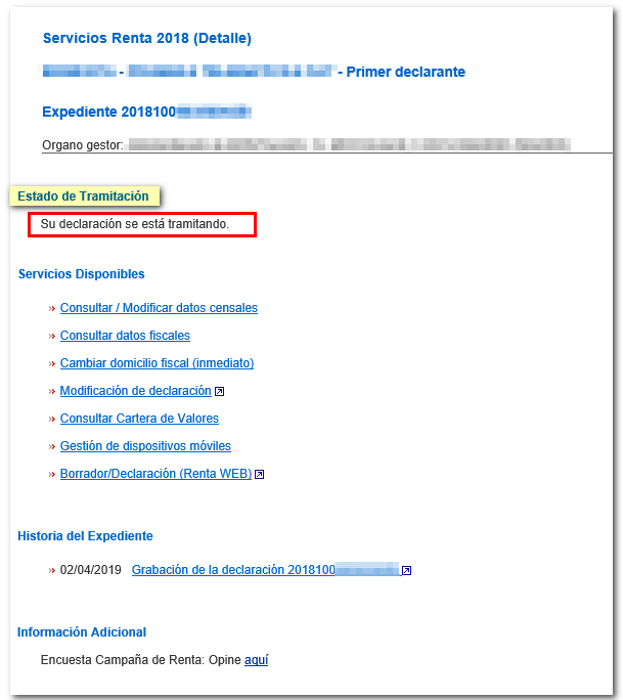 Consulta del estado de tramitación de una devolución de Renta. Para obtener información sobre el estado de tramitación de tu devolución de Renta 2023, accede a los servicios de "Renta 2023" y entra en tu expediente a través de la opción "Servicio tramitación de borrador / declaración (Renta WEB)".. Actualmente, para la consulta del estado de tramitación puedes identificarte de estas.