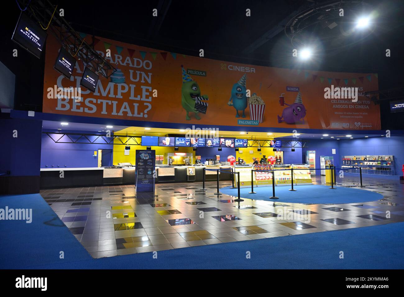 Inside cinema (Cine Cinesa El Muelle) foyer with food catering Stock Photo Alamy