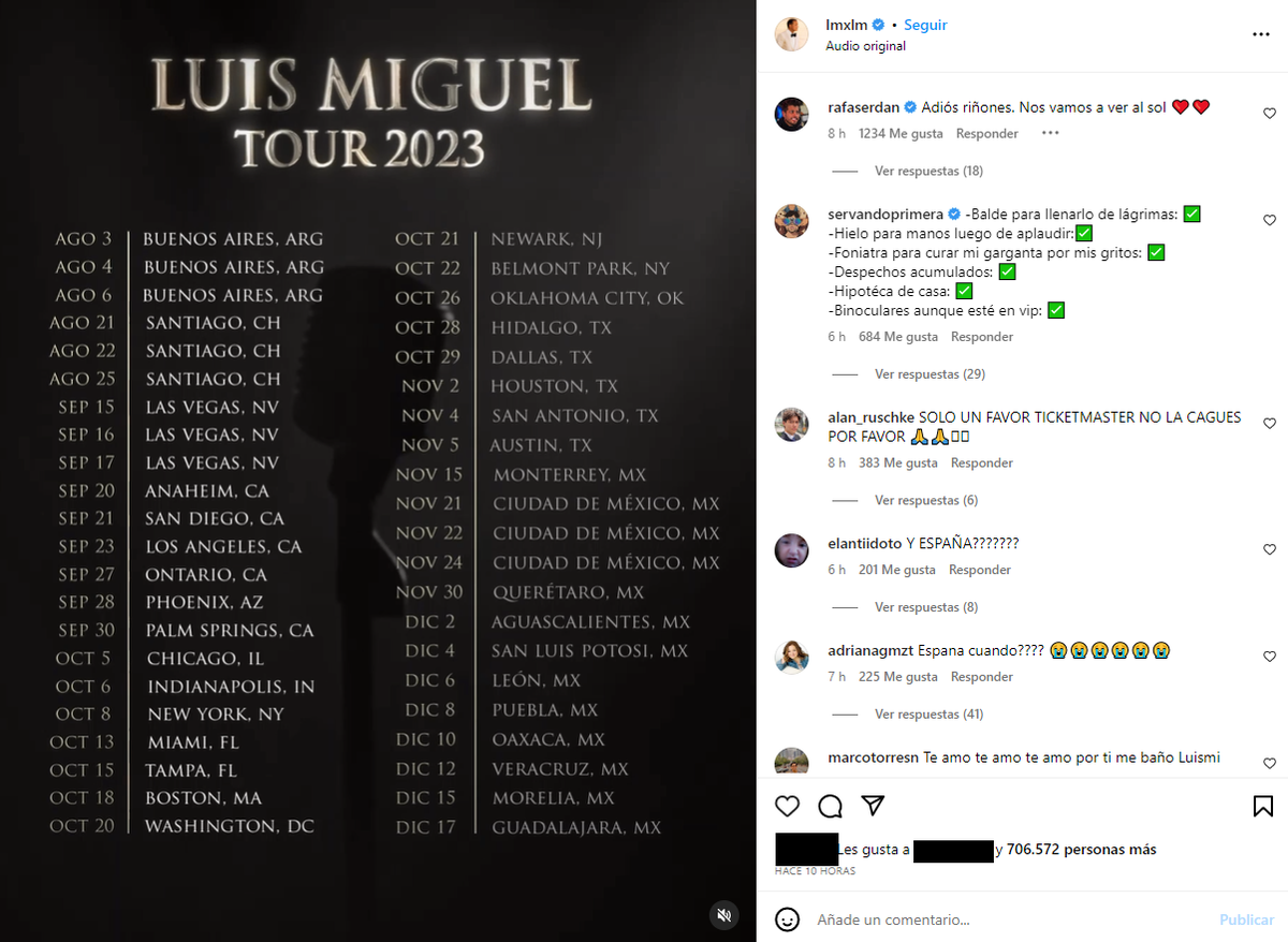 Luis Miguel Argentina ¿Cuándo salen las Entradas para el concierto del Tour 2023? Luis Miguel