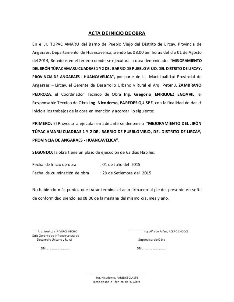 Modelo De Acta De Inicio De Obra Images and Photos finder
