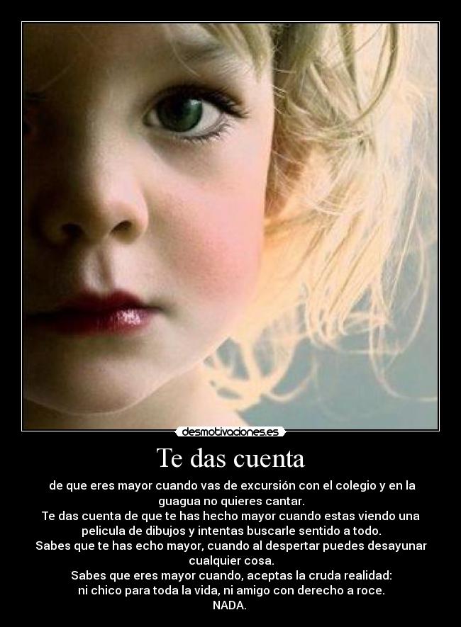 Many translated example sentences containing "cuando te das cuenta". Bajar velas cuando te das cuenta que vas errado o que topas con un obstáculo insuperable o,. puedes dejar para después, porque cuando te des cuenta tendrás infinidad momentos que hubiese.