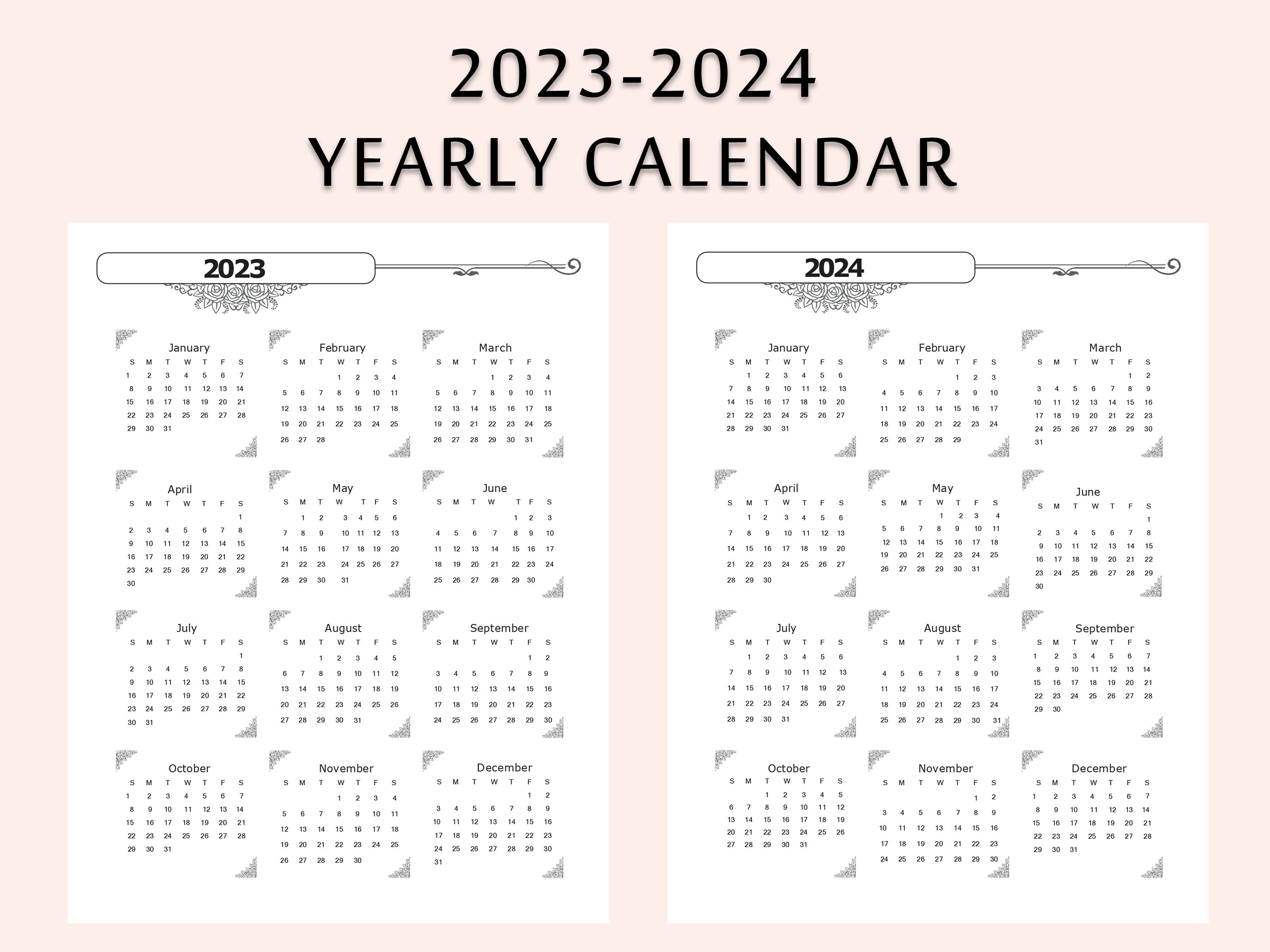 Plantillas de calendarios de dos años de 2023 y 2024 en formatos Word, Excel y PDF. Práctico, versátil y personalizable. Los calendarios van del 1 de enero de 2023 al 31 de diciembre de 2024 (24 meses en una página). Descarga e impresión gratuitas. Edición para España con los días festivos.
