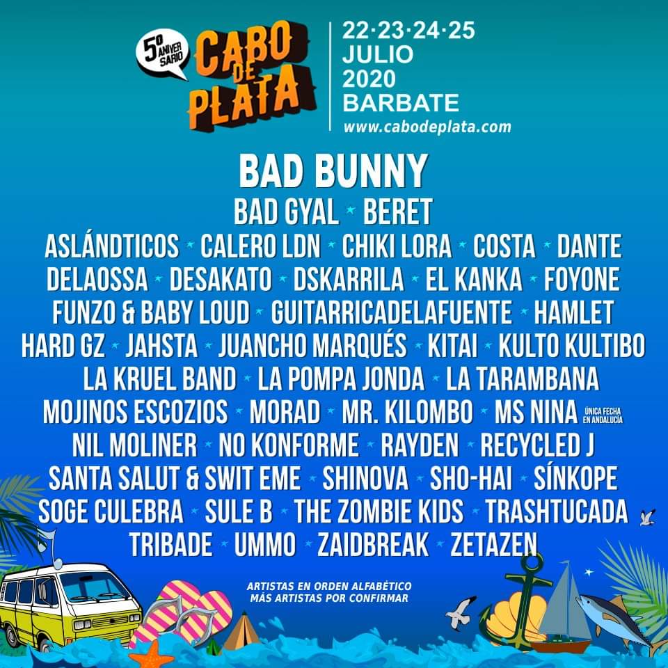 Del 26 al 29 de julio de 2023 Cabo de Plata vuelve a la hermosa playa gaditana de la Hierbabuena (Barbate) para celebrar su sexta edición. El festival se ha convertido en uno de los eventos musicales de referencia del verano en andalucía y en 2022 batió su record de asistencia con más de 115.000 personas. Natos y Waor, Dellafuente, Ska-p.