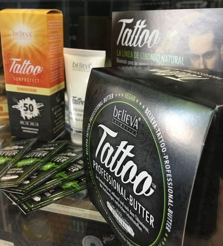 La más recomendada por tatuadores, la que ha usado mi chico siempre, y la que bajo mi punto de vista tiene mejores ingredientes, es la crema Balm Tattoo.. Su primer ingrediente es manteca de karité, seguido de aceite de coco, aceite de semillas de girasol, contiene además provitamina B5, extracto de salvado de arroz, extracto de flor de caléndula, de aloe vera, y agua entre otros.
