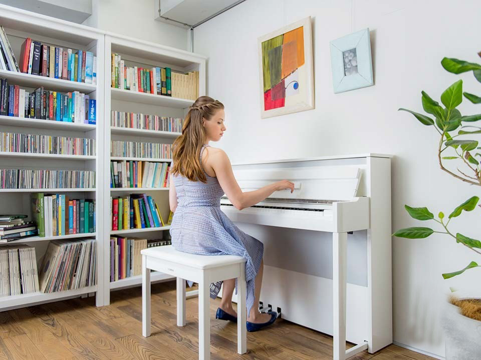 The Kawai Novus NV10 hybrid digital piano is really tough to beat if you're looking for a true grand piano replacement without the maintenance requirements of an acoustic piano, while the NV5 is going to hit the nail on the head for people who love a great upright piano experience. Both available in a striking ebony polish finish with slow.
